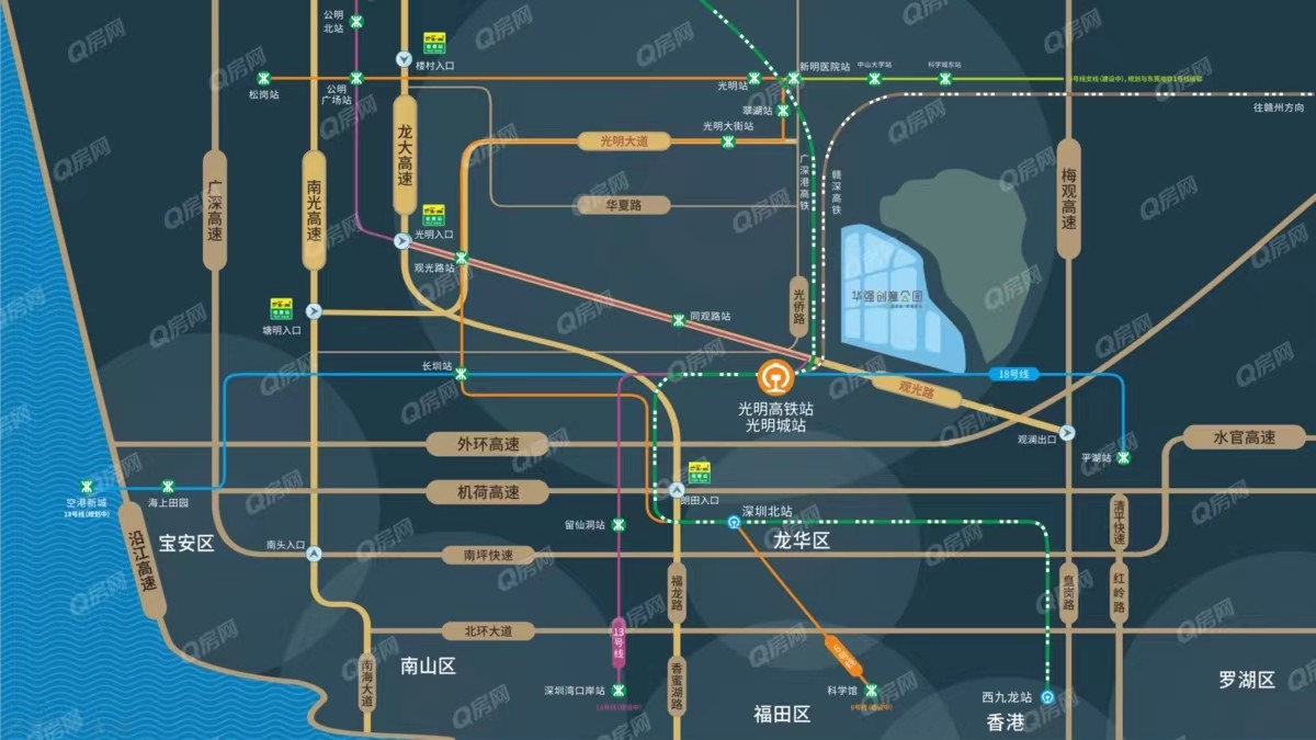 明高鐵中心商務(wù)區(qū)(高鐵站300米),鳳凰城核心區(qū)域、光明區(qū)行政中心,同時引進騰訊研發(fā)培訓(xùn)基地、招商“智慧城”、華僑城“創(chuàng)想新城,國際IT巨頭微軟、美國杜邦等知名企業(yè)入駐