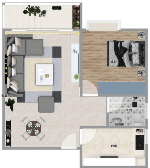 一房62㎡ 租金1200